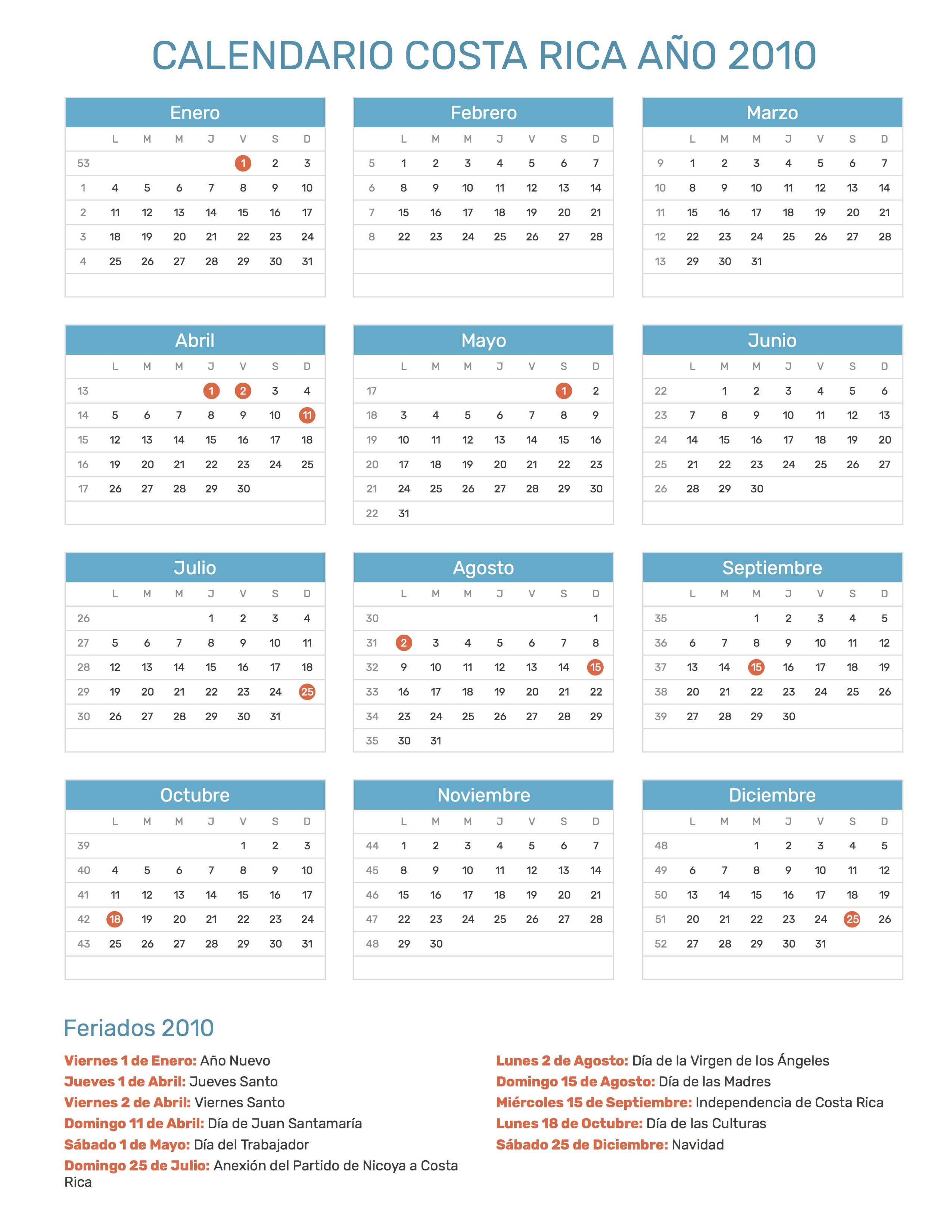 AVISO: Los días feriados o festivos año 2010 están basados en las políticas oficiales vigentes para cada país. Por lo tanto podrían haber errores en años pasados o futuros. Cualquier error o sugerencia de fechas que deban ser modificadas son bienvenidas. Contáctanos enviándonos un correo electrónico a través del icono de email parte inferior del sitio web, estaremos felices de leerte. CalendarioHispanohablante.com no se hará responsable ante cualquier eventualidad a causa de la información suministrada en esta página