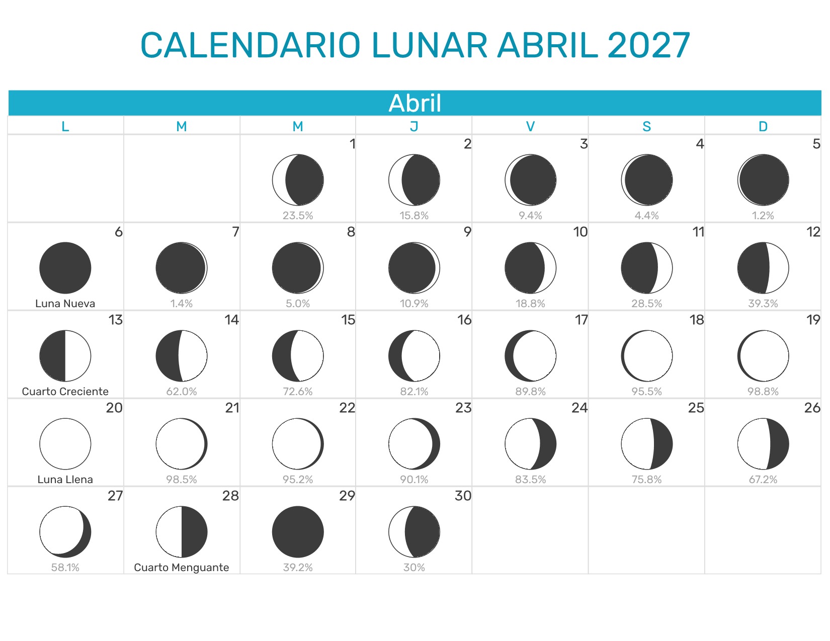Calendario Lunar Abril 2027