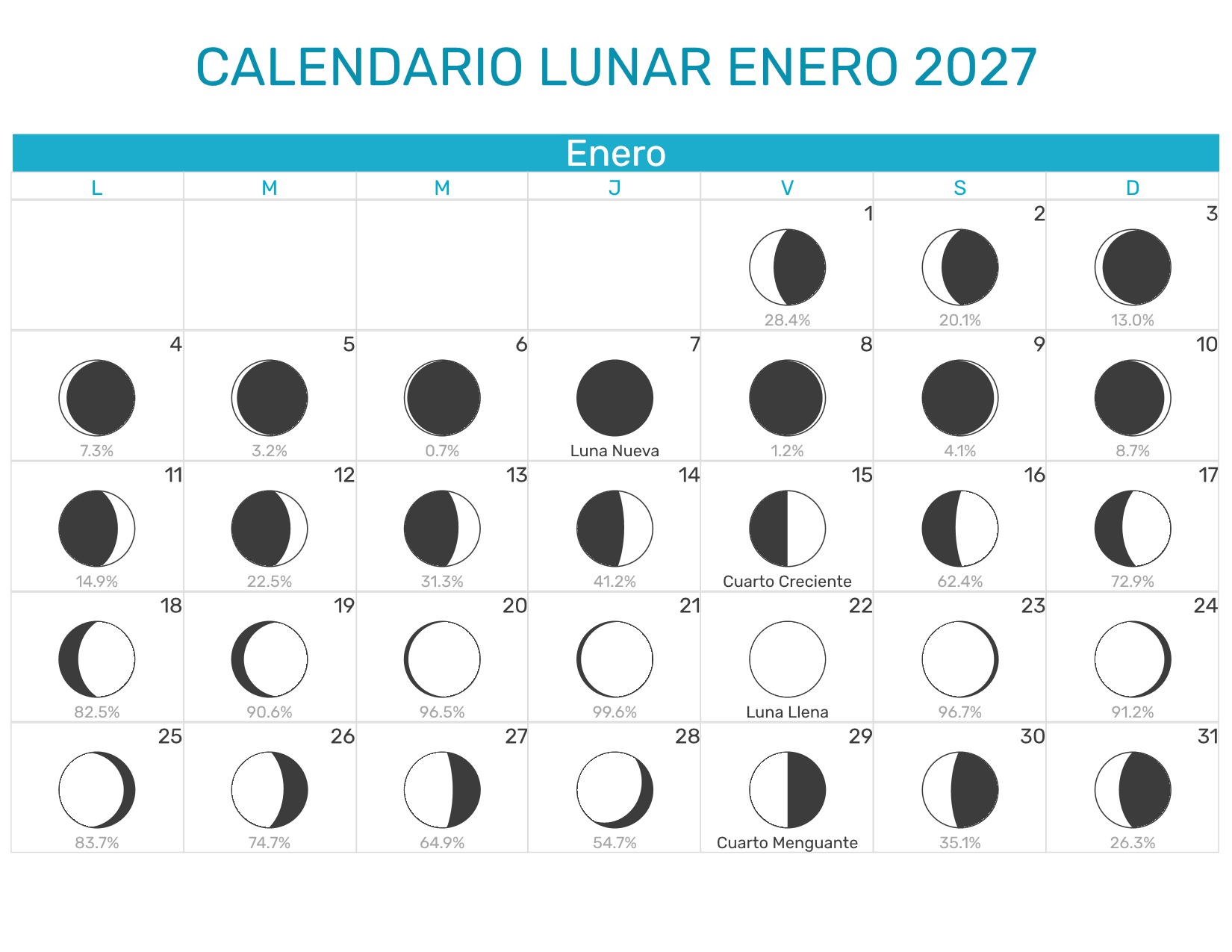 Calendario Lunar Enero 2027