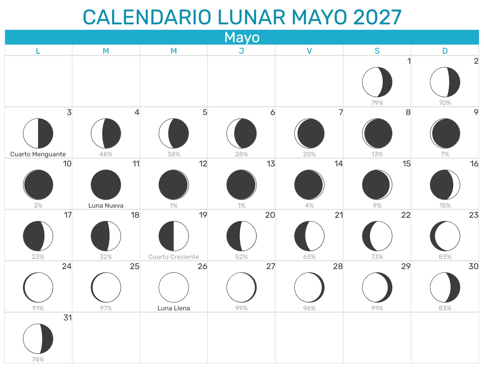Calendario Lunar Mayo 2027